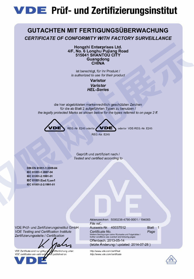 廣東鴻志電子科技有限公司成立于1993年,位于美麗的海濱城市汕頭,現已發(fā)展成為元器件制造集團企業,生產壓敏電阻、NTC熱敏電阻、陶瓷電容和金屬化薄膜電容,通過了ISO9001質量體系認證和ISO14001環(huán)境體系認證,以及IATF16949汽車產品質量體系認證...